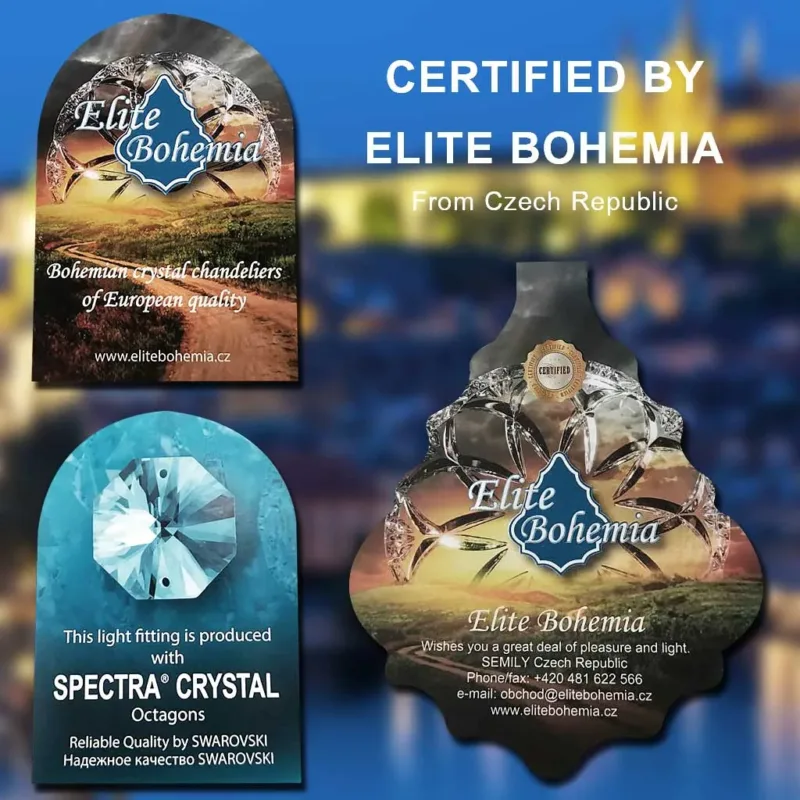 Elite Bohemia ก่อตั้งขึ้นในปี 1996 เป็นหนึ่งในบริษัทเอกชนรายแรกๆ ของ Czech Republic ที่ริเริ่มกระบวนการผลิตโคมไฟคริสตัล