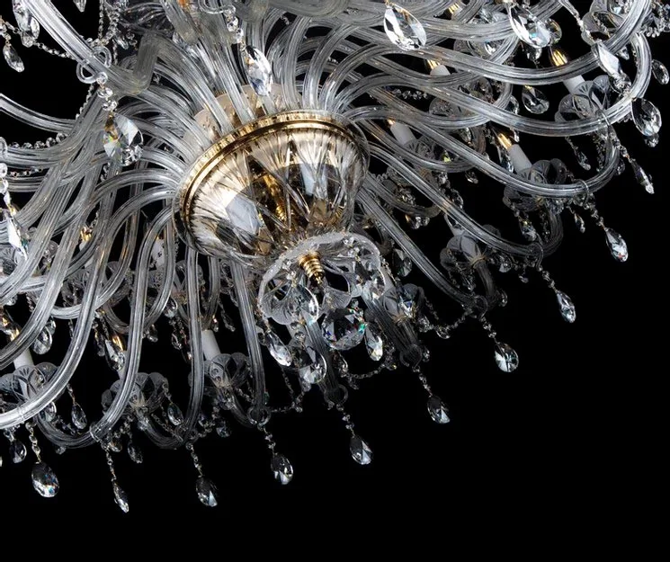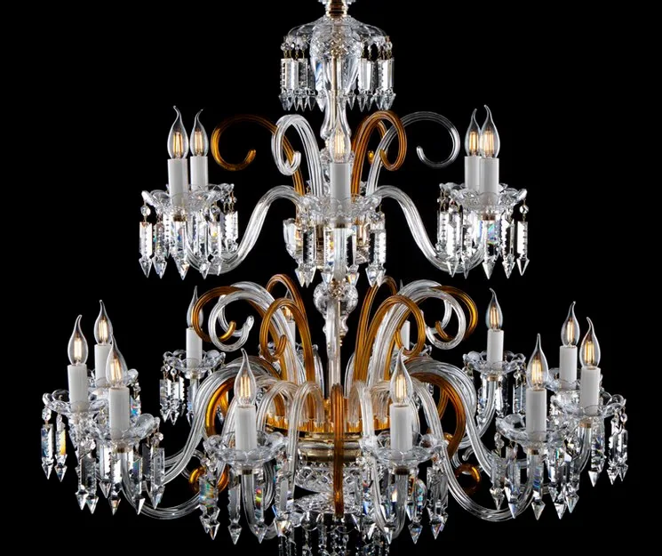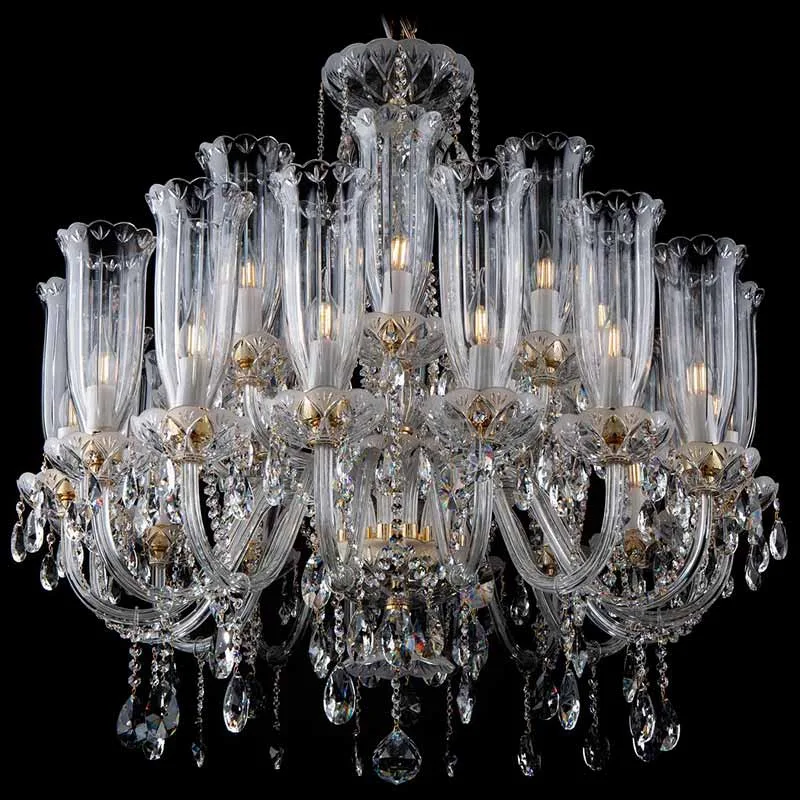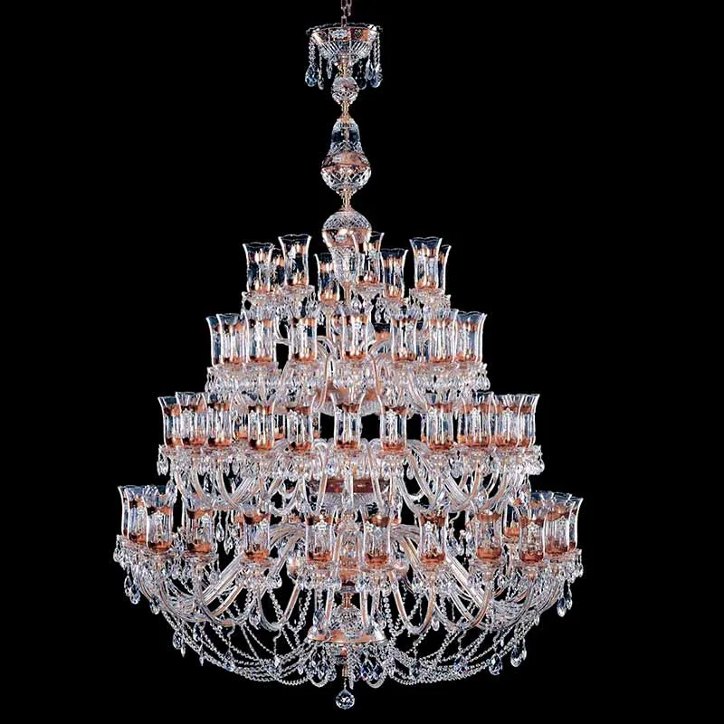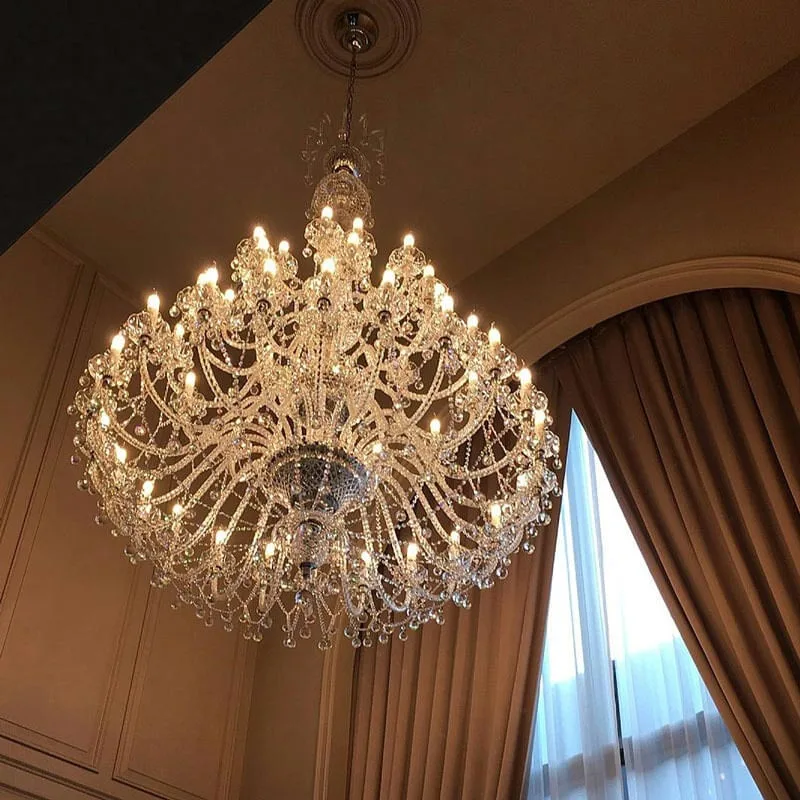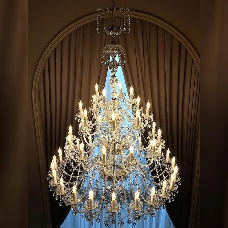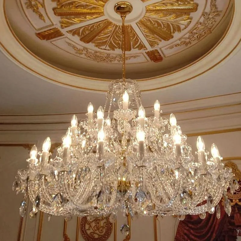 โคมไฟคริสตัล โคมไฟระย้าที่มีการตกแต่งอย่างหรูหรา โคมไฟมีความใหญ่และอลังการ สามารถติดตั้งห้องโถงขนาดใหญ่ ฟลอร์เต้นรํา หรือพระราชวัง