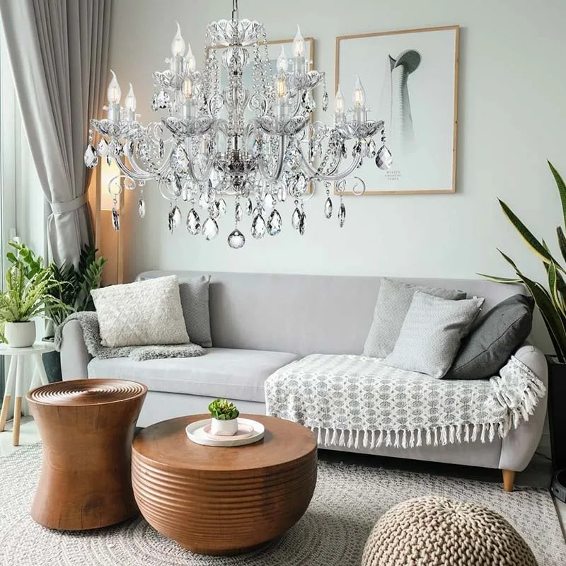 โคมไฟคริสตัล โคมไฟระย้ารูปทรงเรียบง่าย สดใหม่ ช่วยให้ห้องของคุณดูโมเดิร์น สว่างไสว