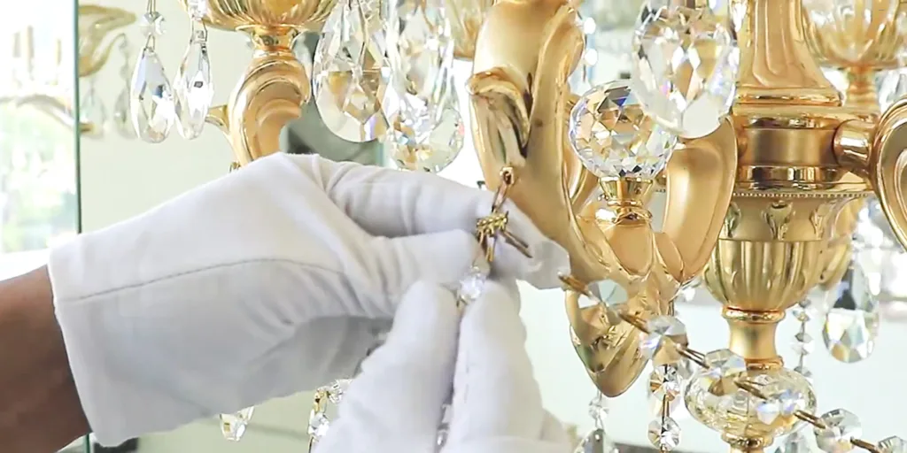 การทำความสะอาดคริสตัลใน โคมไฟระย้า ต้องใช้ความระมัดระวังเป็นพิเศษ เพราะคริสตัลมีความละเอียดและสามารถเกิดรอยขีดข่วนได้ง่าย